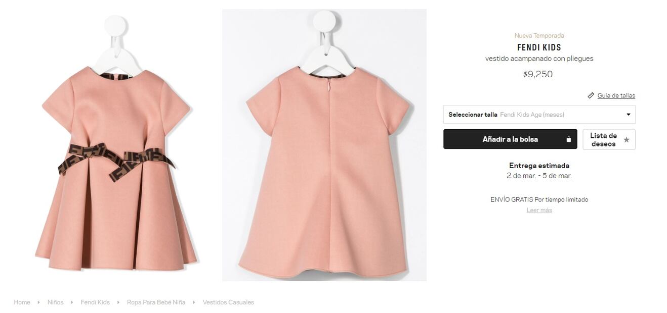 De acuerdo al sitio, el vestido es de la nueva temporada y menciona que es de Fendi Kids, aunque no aseguramos que sea el mismo al que se observa en la imagen que compartió la conductora, logramos ver que tiene los mismos moños con la logomanía del mismo color y en el mismo lugar. Leer también: La emotiva canción que la hija de Inés Gómez Mont le dedicó a su esposo, Víctor Álvarez Puga