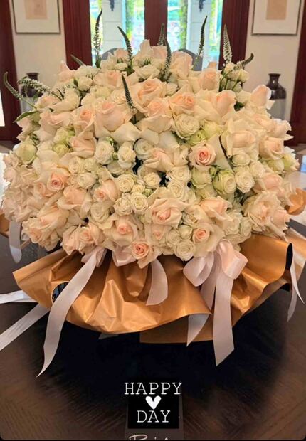 Aunque sin duda, lo que se robó la atención fue una fotografía que la modelo subió a sus historias donde se aprecia un enorme ramo de decenas de flores rosas y blancas. “Día feliz”, escribió Nadia Ferreira en la descripción de la imagen.