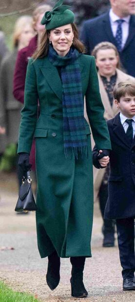 La princesa de Gales se presentó en la misa navideña con un abrigo verde de lana diseñado por Sarah Burton para Alexander McQueen. El color verde, conocido por simbolizar la esperanza y el optimismo, fue una elección significativa tras el difícil año que ha vivido.