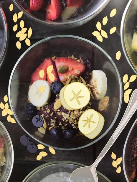 -Sorbete de acai (moras congeladas, plátano, polvo de acai y miel de agave)