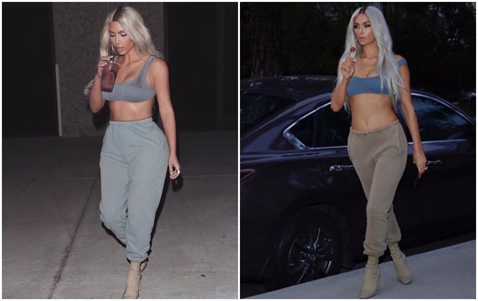 A través de diversas fotografías Paris emula el estilo de Kim Kardashian, quien fue su asistente personal hace once años. En otra imagen aparece usando leggins y sudadera, pero eso no es todo pues en otra luce mallas cortas y calzado deportivo, haciendo más evidente este robo de imagen.