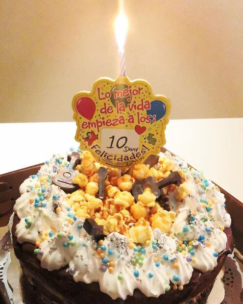 Por último, no podía faltar el pastel en este festejo y por su cumpleaños, Daniel recibió uno muy especial, que cualquier niño podría desear: cubierto con chocolates, palomitas y dulces. Muy similar al que le regalaron él y su hermano, Miguel, a su mamá en junio pasado para celebrara el Día del Padre.