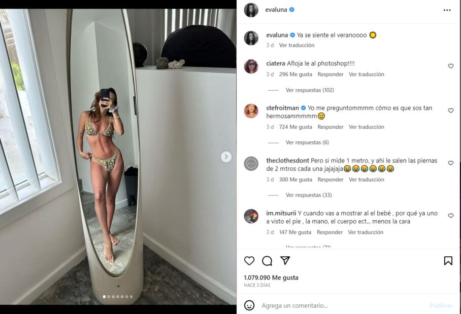 El verano pasado, la actriz y cantante venezolana, de 25 años, Eva Luna, compartió una 'mirror selfie' que se robó todos los suspiros de sus más de 21 millones de seguidores, pues su tonificado abdomen llamó la atención.
