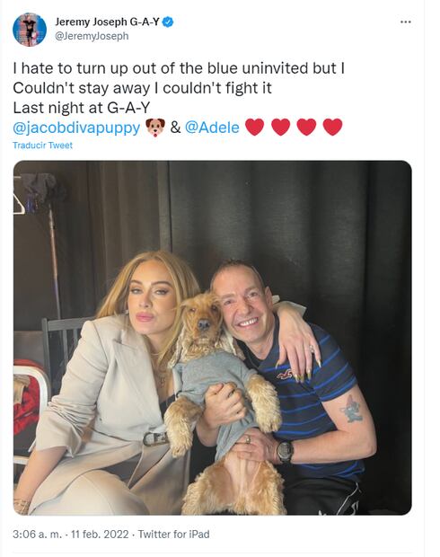 Jeremy Joseph, dueño de los clubes nocturnos GAY en Londres, fue otro de los sorprendidos, no se quiso quedar atrás y corrió a tomarse una foto con Adele. "Odio aparecer de la nada sin ser invitado, pero no podía mantenerme alejado, no podía luchar contra eso anoche en GAY”, escribió.