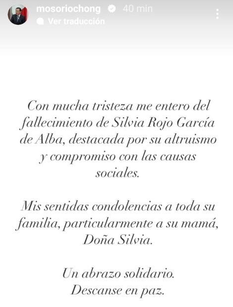 “Lamentamos profundamente el sensible fallecimiento de Silvia Rojo García de Alba, filántropa y amiga. Nos unimos a la pena que embarga a su familia y seres queridos”.