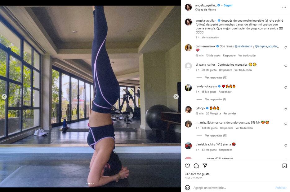 "Después de una noche increíble desperté con muchas ganas de alinear mi cuerpo con buena energía. Que mejor qué haciendo yoga con una amiga", escribió la hija de Pepe Aguilar en su cuenta de Instagram.
