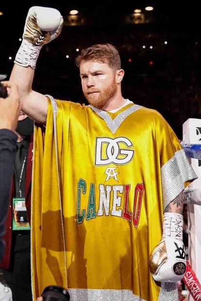 A pesar de todo lo que estaba en juego para el mexicano, una de las cosas que más llamaron la atención de los seguidores de la pelea fueron los outfits con los que salió el pugilista de su vestidor, ya que no solamente el color dorado resaltó, también las enormes iniciales “DG”, las cuales eran de la reconocida marca de ropa italiana “Dolce & Gabbana”, propiedad de los diseñadores Domenico Dolce y Stefano Gabbana.