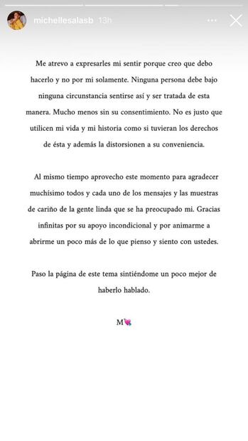 (Mensaje de Michelle Salas / Instagram: michellesalasb)