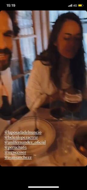 En la imágenes se aprecia que la pareja se sentó uno a lado de otro y estuvieron acompañados por la actriz Belén López, el músico Añil Fernández, la publirrelacionista Elisa Gil Perucha y el diseñador de moda Eduardo Navarrete, este último fue el encargado de presumir en su cuenta de Instagram las primeras imágenes de Irene junto a Iván desde que se dio a conocer su noviazgo.