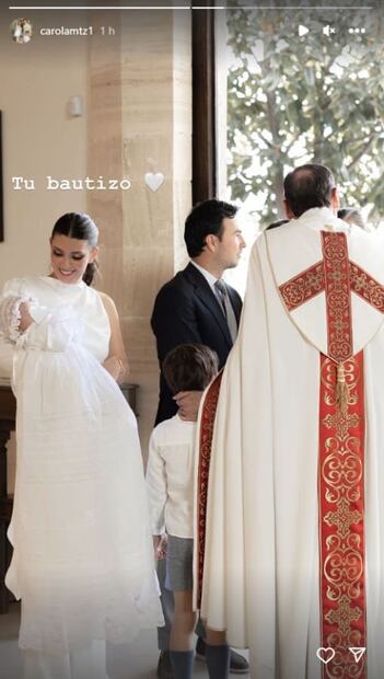 "Tu bautizo", escribió la guapa tapatía junto a un emoji de corazón blanco, mismo que utilizó para cubrir la carita de la bebé, quien fue vestida con un clásico ropón blanco. Para la ocasión tan especial, Carola eligió un look sofisticado, con el pelo recogido en una coleta y un maquillaje elegante, mientras que 'Checo' se decantó por un traje negro con corbata gris y camisa blanca.