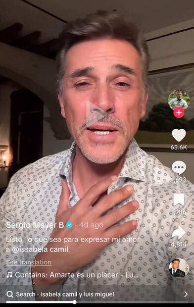 El video fue compartido hace unos días a través de su cuenta verificada de TikTok, red social donde Mayer acumula poco más de un millón de seguidores. "Listo, lo que sea para expresar mi amor a Issabela Camil", escribió el actor en su publicación.