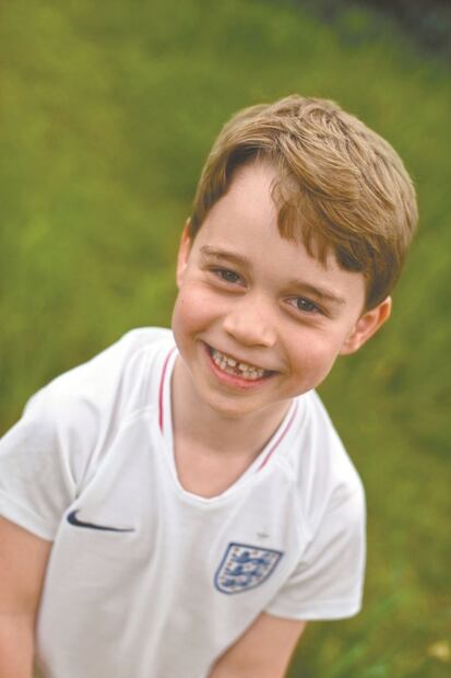Como ha ocurrido en los últimos años, Kate Middleton y el príncipe William celebran el cumpleaños de su primogénito, el pequeño príncipe George, con una serie de fotografías que enaltecen la vida de su hijo, a quien en esta ocasión lo retrataron en el jardín de su casa, acostado en el pasto, sonriente y con la playera de la selección de futbol de su país, Inglaterra.