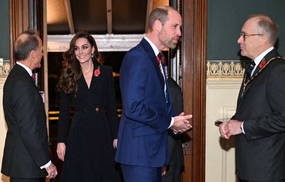 Como dicta la tradición, Kate Middleton, el príncipe William y otros integrantes de la familia real británica, a excepción de la reina Camila, quien no pudo asistir por una infección en el pecho, vistieron de negro y portaron una amapola roja para rendir homenaje a los militares británicos.