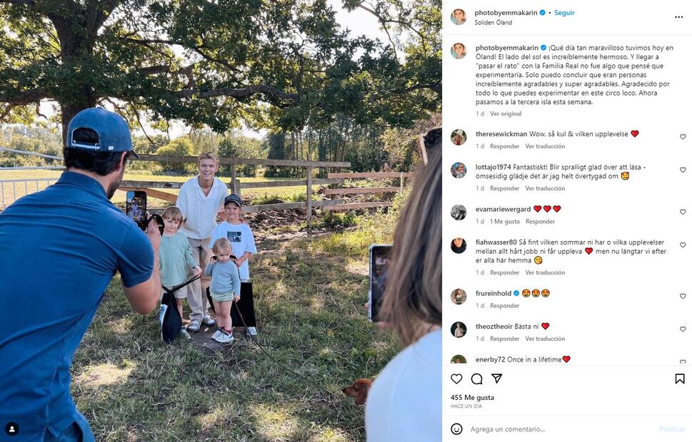 "¡Qué día tan maravilloso tuvimos hoy en Öland! Solliden es increíblemente hermoso y 'pasar el rato' con la familia real fue algo que no esperaba", escribió Theodor Haraldsson.